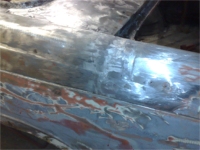 When I had finished the welding, I had a go at body soldering (aka Lead Filling). Having watched a couple of videos clips on the web and studied a couple of different techniques I had a go, and to be honest Idon't think it came out too bad! The Photos show the first skim of lead, and I will take some more when I have put on the final skim to fill a few remaning low spots. To begin with it is very tricky as you do not know how hot to get the body or the solder and when you have it too hot, it just puddles and on vertical panels, just runs off onto the floor!