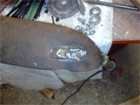 Last few evenings have been spent sorting out the hood frame. Luckily I managed to find a good frame (see earlier updates) and this needed only minor repairs where the webbing strap sits at the front. This was welded and ground down, before painting with Smoothrite. All the hood frame comes apart fairly easily so it was pretty striaght forward to rub down and paint each bit.